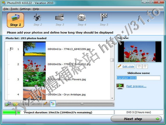 VSO PhotoDVD可以創建一個生動的、在標準的家用DVD機上觀的看數字照片幻燈演示。不需
